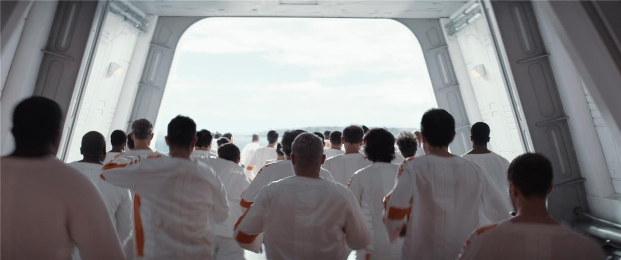 Prisoners from Cassian’s floor overwhelm guards and spread to others, freeing hundreds. Cassian and Kino Loy seize the control room, taking guards hostage; Kino broadcasts a stirring “One way out!” speech over the intercom, rallying all levels to charge together.
