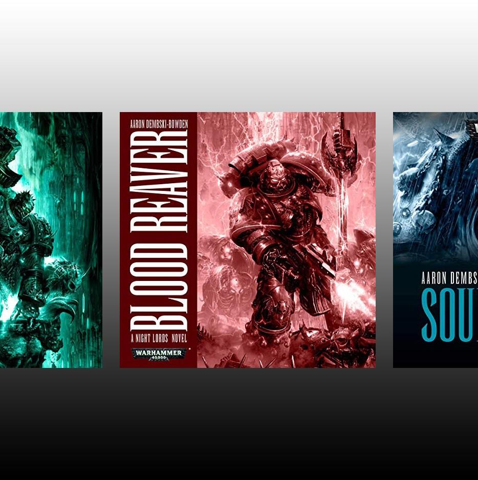The Night Lords trilogy is made up of Soul Hunter, Blood Reaver, and Void Stalker. These books, written by Aaron Dembski-Bowden, follows the tenth company of the Night Lords. These Chaos Space Marines aimlessly hunt their way through the edges of the Imperium, spreading terror but also fighting among themselves and fellow renegade warbands. At one point, they even meet the alien Eldar, and find themselves fleeing in turn.