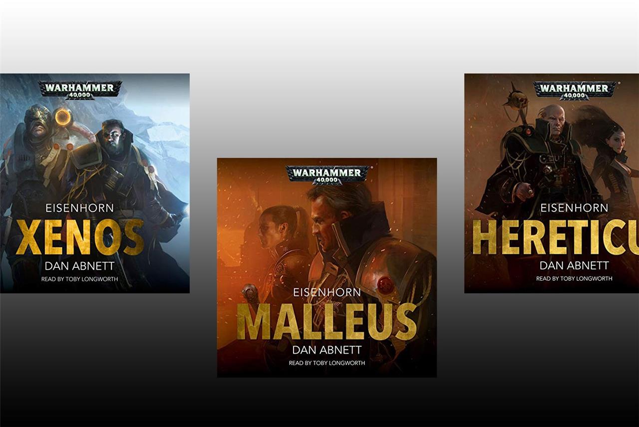 The Eisenhorn Trilogy includes the books Xenos, Malleus, and Hereticus and tells the story Inquisitor Gregor Eisenhorn, an unconventional agent of the Imperium of Mankind. Expect a pulpy storyline with echoes of Blade Runner and The Young Pope.