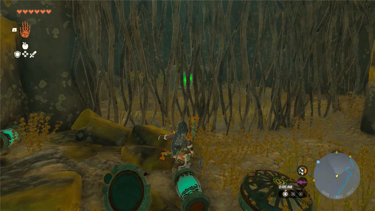 Cut or burn the vines using a sharp weapon, fire fruit, or arrows to access the crystal inside.โโ