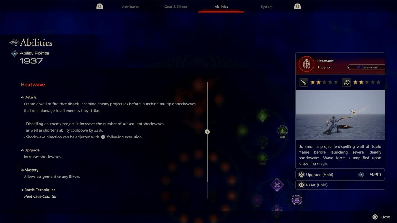Mastering abilities in Final Fantasy 16 can lead to many different outcomes depending on what you’re upgrading. To see what mastering an ability will change, head to the abilities menu and hover over any ability. Then, press triangle to see the ability’s details, upgrades, mastery, and battle techniques.