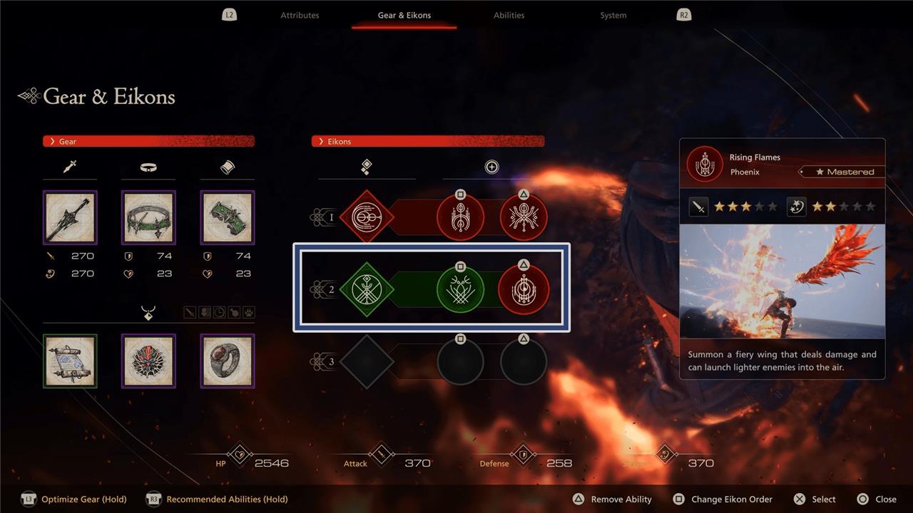 Not every ability’s mastery is the same, but they will tend to follow the same pattern. If the ability is an Eikon’s ability such as Phoenix’s Rising Flames, you can assign the mastered ability to any Eikon. For example, if you’re using Phoenix and Garuda and you’ve mastered Phoenix’s Rising Flames, you can swap out one of Garuda’s abilities for Rising Flames.