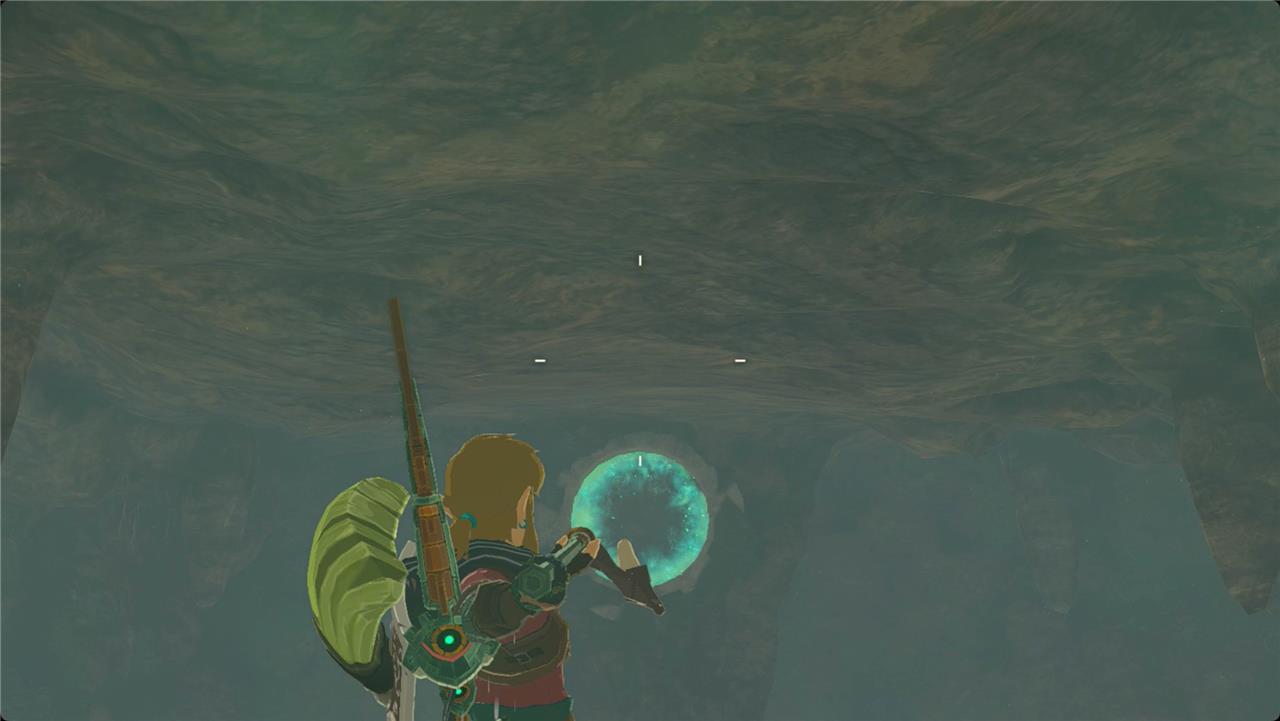Grab one of the Zonaite spears from the ground nearby and Fuse a Keese wing to it. Climb onto the pedestal to the left. It’ll light up and your target will light up on the other side of the cavern.