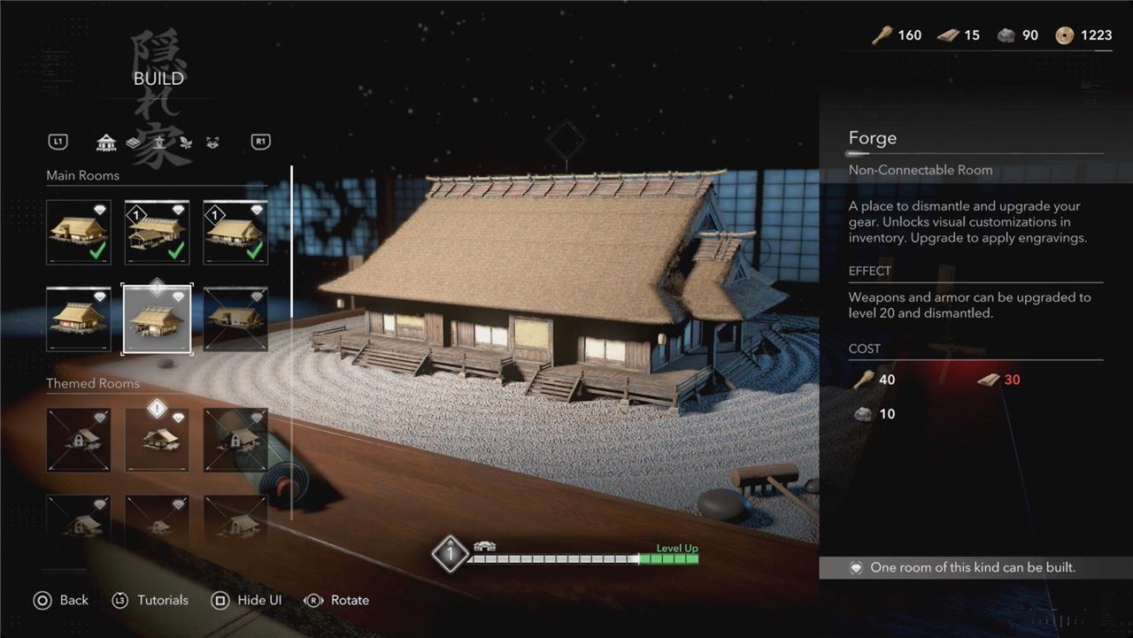 Once you have enough resources, head back to Tomiko’s Homestead. Back at the Hideout, open the Build menu and you can find the Forge in the second group down.