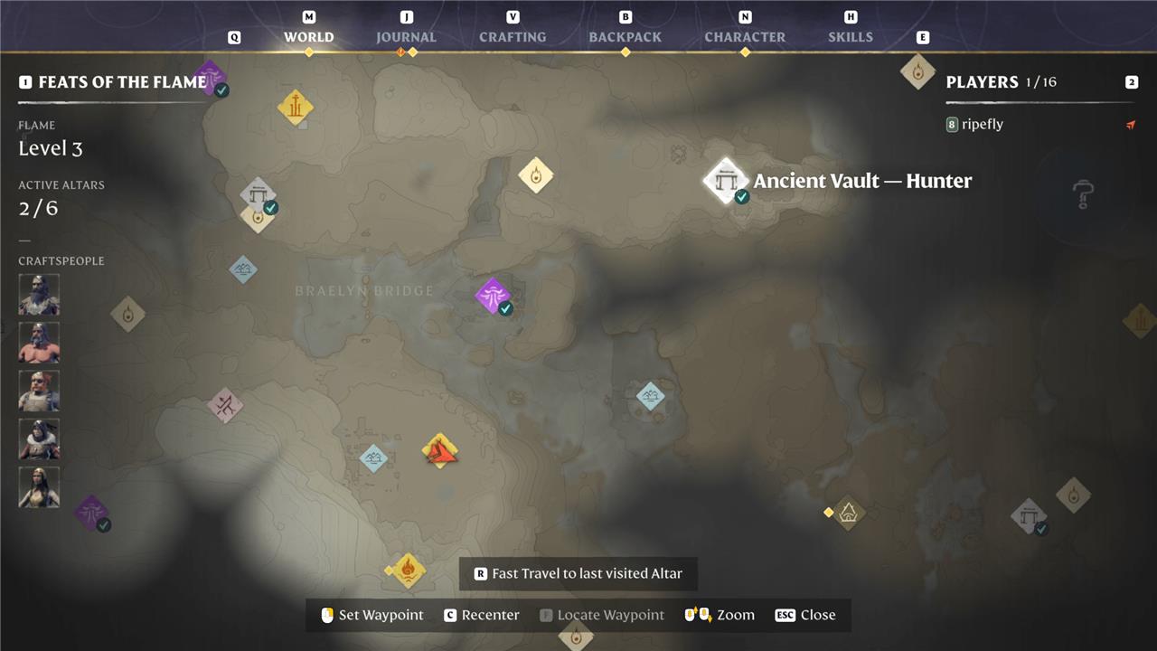 You can find the Hunter in Enshrouded by heading to her Ancient Vault, located northeast of your initial base or directly west from the Springlands Ancient Spire fast travel point. To reach her vault, it’s best to clear the Springlands Ancient Spire first, which then becomes a waypoint for easier access. Once inside the vault, you will face hostile bear-men and need to navigate traps before awakening the Hunter NPC. After freeing her, you can summon the Hunter to your base or any enclosed building, unlocking her crafting functions focused on fur items and ranged weapon upgrades.