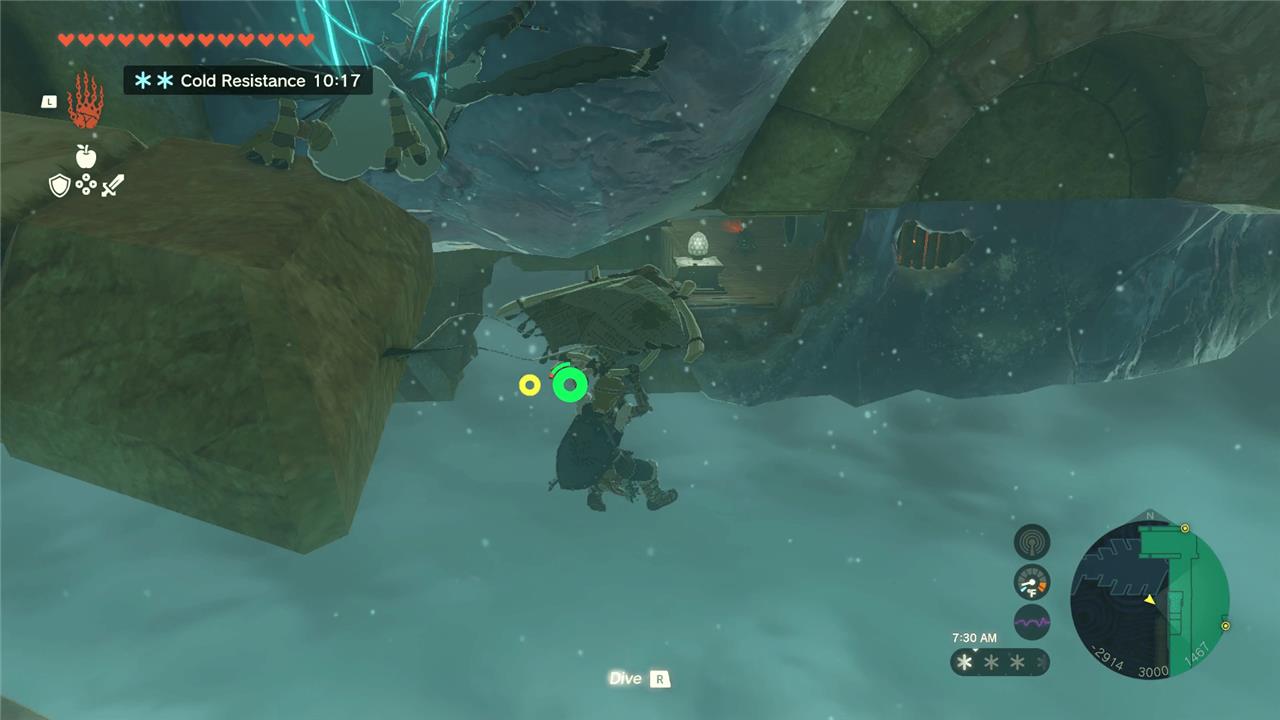 Stock up on cold-resistant armor and meals before setting out, as the harsh winds and frigid temperatures can quickly drain your health. Make sure to bring plenty of arrows, as airborne battles and ranged switches are common inside. Fuse weapons with materials that enhance attack power or elemental effects to handle enemies faster. Upgrading your stamina wheel also helps, since you’ll spend a lot of time gliding and climbing in windy areas. Finally, complete Tulin’s quest beforehand so you can use his gust ability, which is key to reaching several sections of the dungeon.