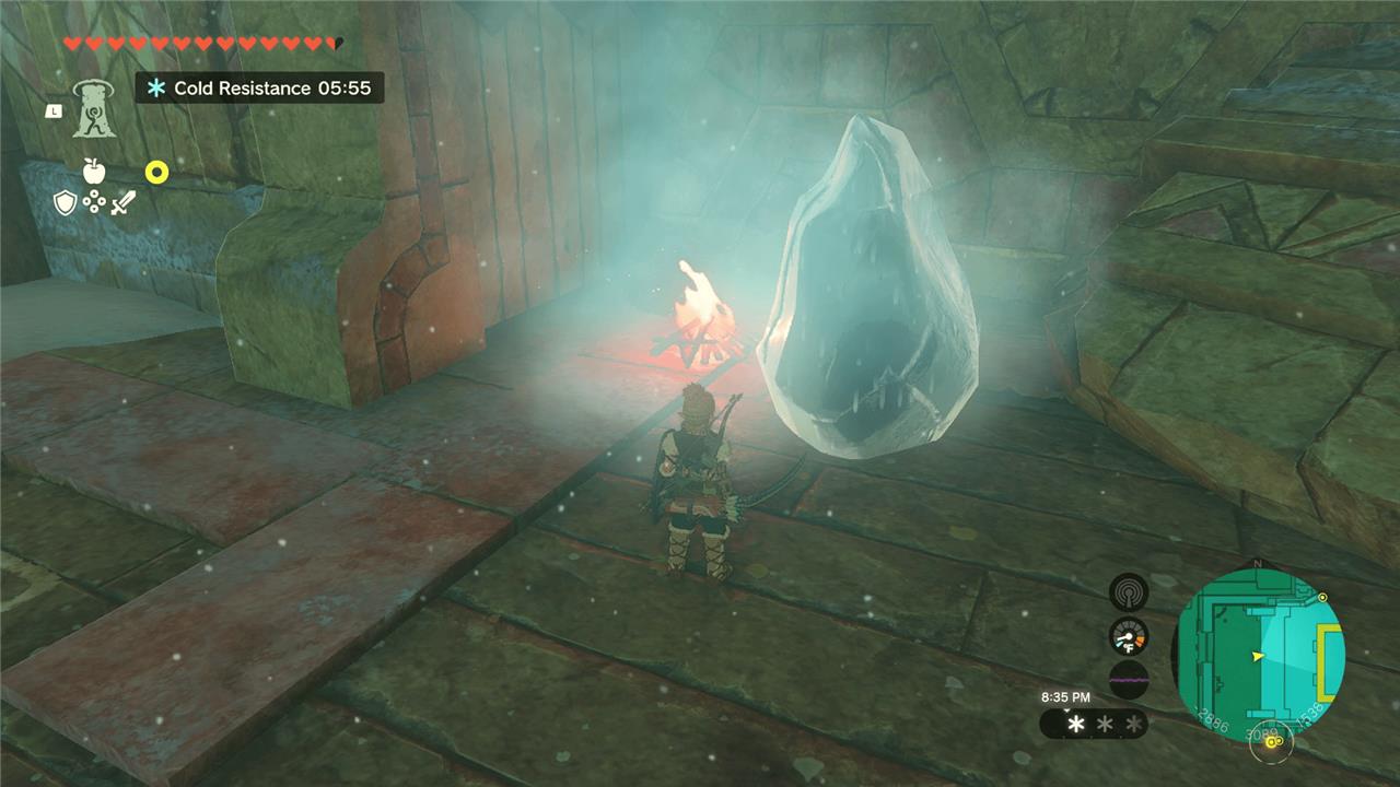Before you start solving the lock puzzles in the Wind Temple, make sure you have some woodandflint on-hand, as you’ll need to melt large chunks of ice to get some optional loot.