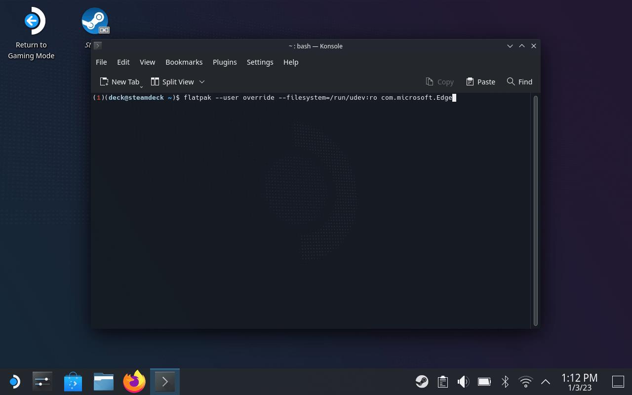 In Desktop Mode, open Konsole: flatpak -user override -filesystem=/run/udev:ro com.microsoft.Edge (case-sensitive; exit after).โ