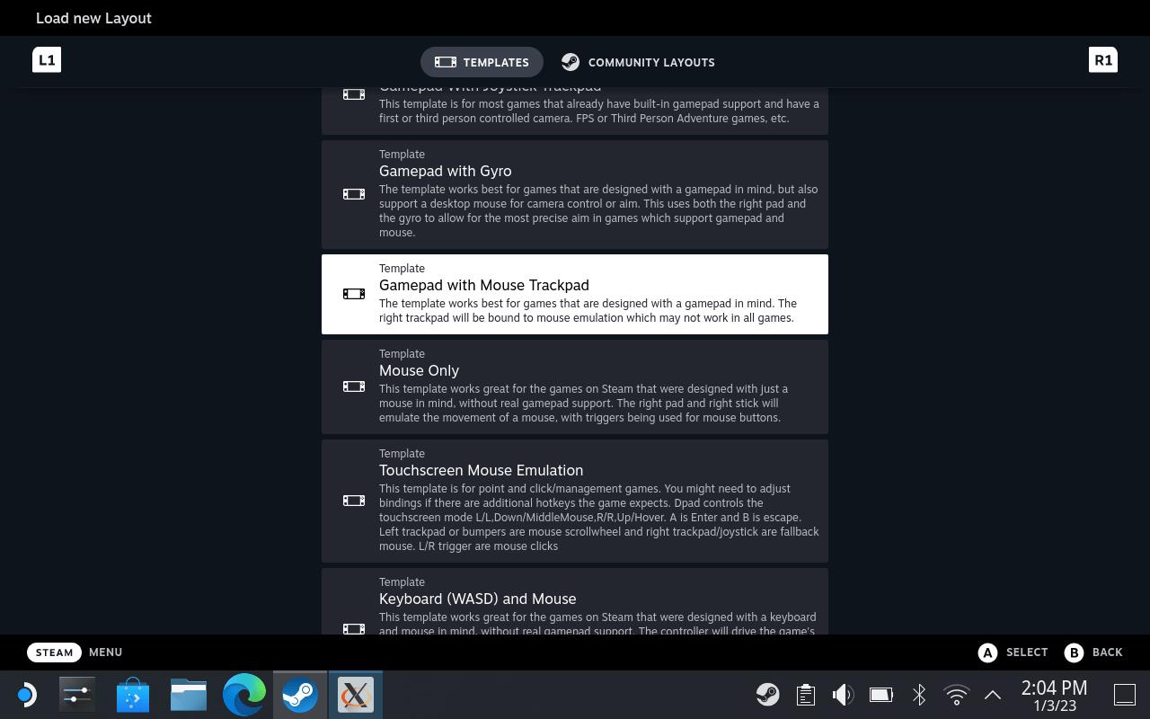 Browse >Templates >Gamepad with Mouse Trackpad > Apply Configuration (X button).