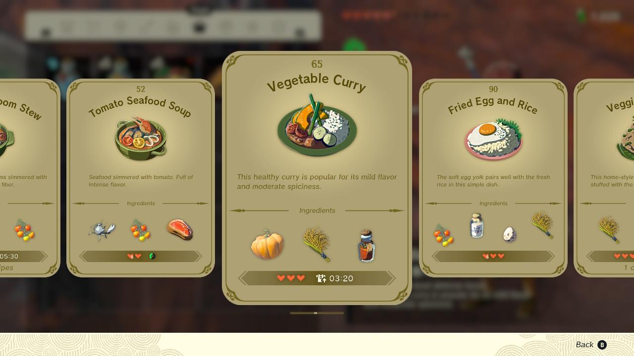 - Recipe ingredients: A carrot or pumpkin, as well as Hylian rice and goron spice
