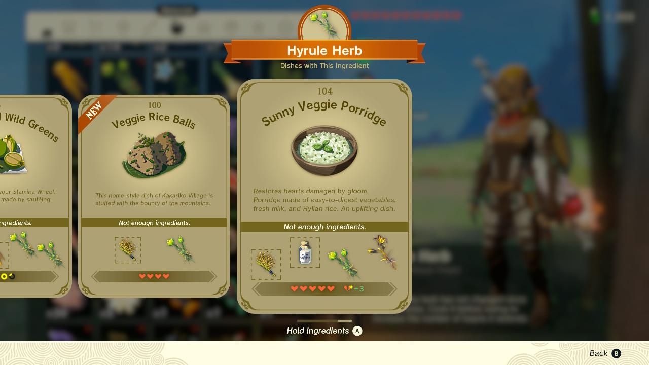 - Recipe ingredients: Any herb, hylian rice, fresh milk, and one sundelion