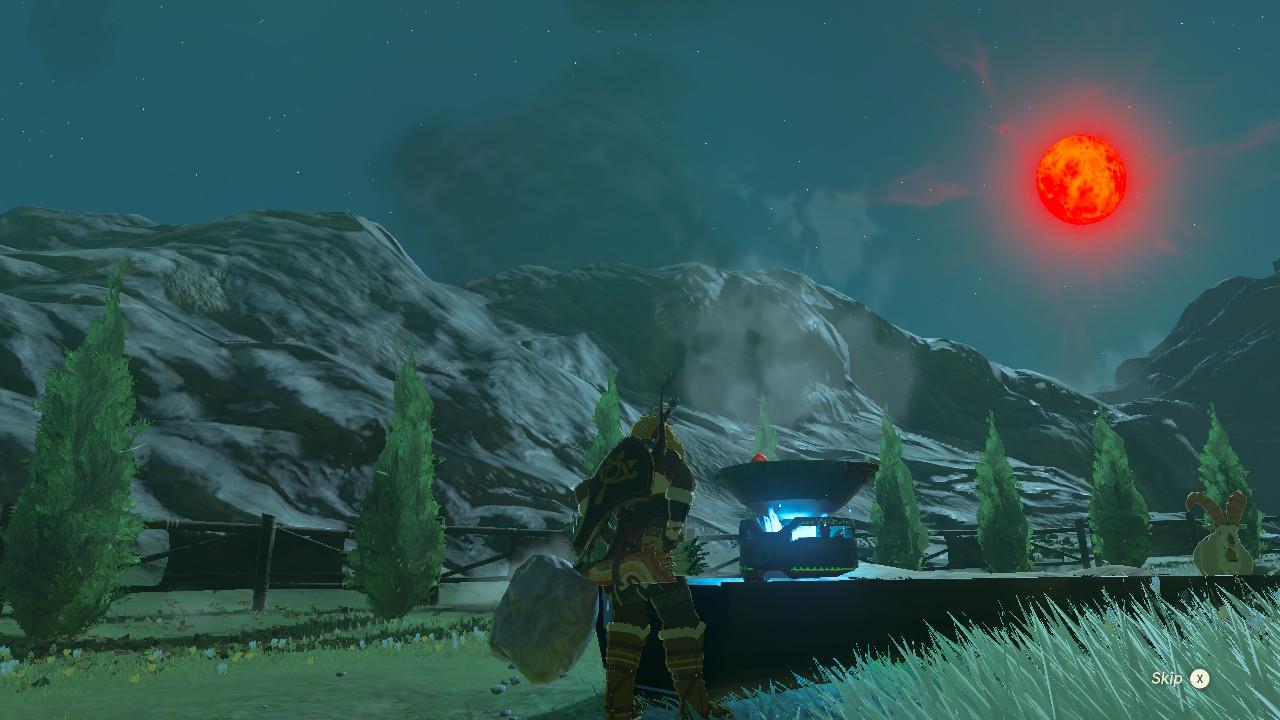 The Blood Moon rises every seven in-game days, or after 168 minutes of playtime, triggering a cutscene with a red glow across the sky that resets the world. It revives defeated enemies like Lynels and Gleeoks, restores dropped weapons, materials, ore deposits, and chest loot for repeatable farming. Cooking during its active phase from 23:30 guarantees critical success for stronger buffs, while certain glitches can force it early by overloading game memory.