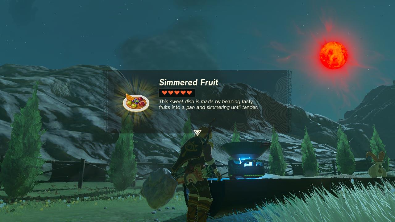 Head to your nearest cooking pot (stables each have one, along with a variety of other places, or you could place a Zonai pot) and get ready to start cooking. Once the clock hits 23:30, a short animation begins playing and the creepy music starts – this is your cue, maestro. If you do it before the music changes, you won’t get the bonus. Here’s what five cooked apples grants when cooked before 23:30:
