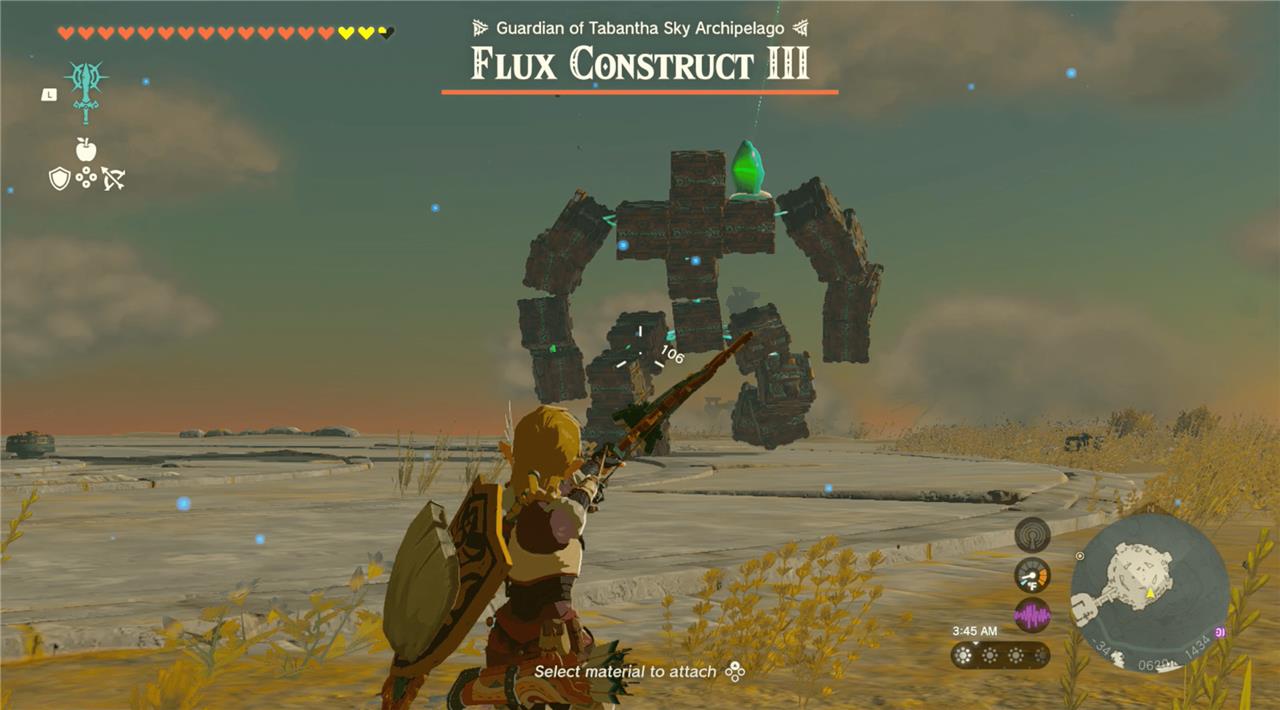5. Defeating the Flux Construct 3 will reward you with several Zonai devices as well as leave behind some building materials. Collect everything you can and then head to the outcropping of the island southwest of the battlefield.