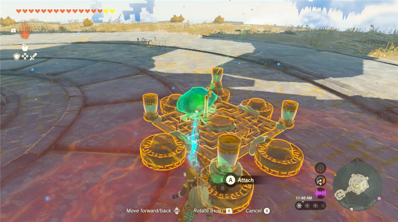 12. Afterwards go grab the glowing green-blue rock needed to complete the shrine and fuse it to your hovercraft with Ultrahand. You can view the full build in action below.