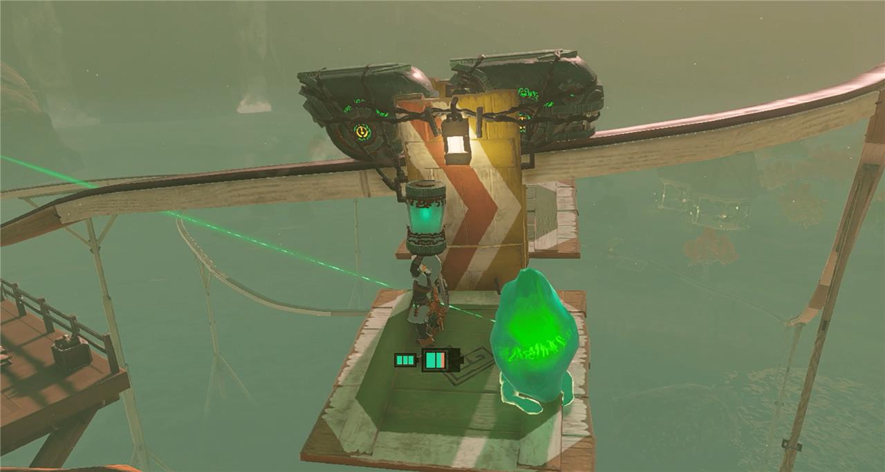 2. Glue the crystal to the railcar platform using Ultrahand and take the Zonai battery next to Hagie with you. Hop onto the railcar and hit it to activate it, then ride it down to the Hudson Construction Site.