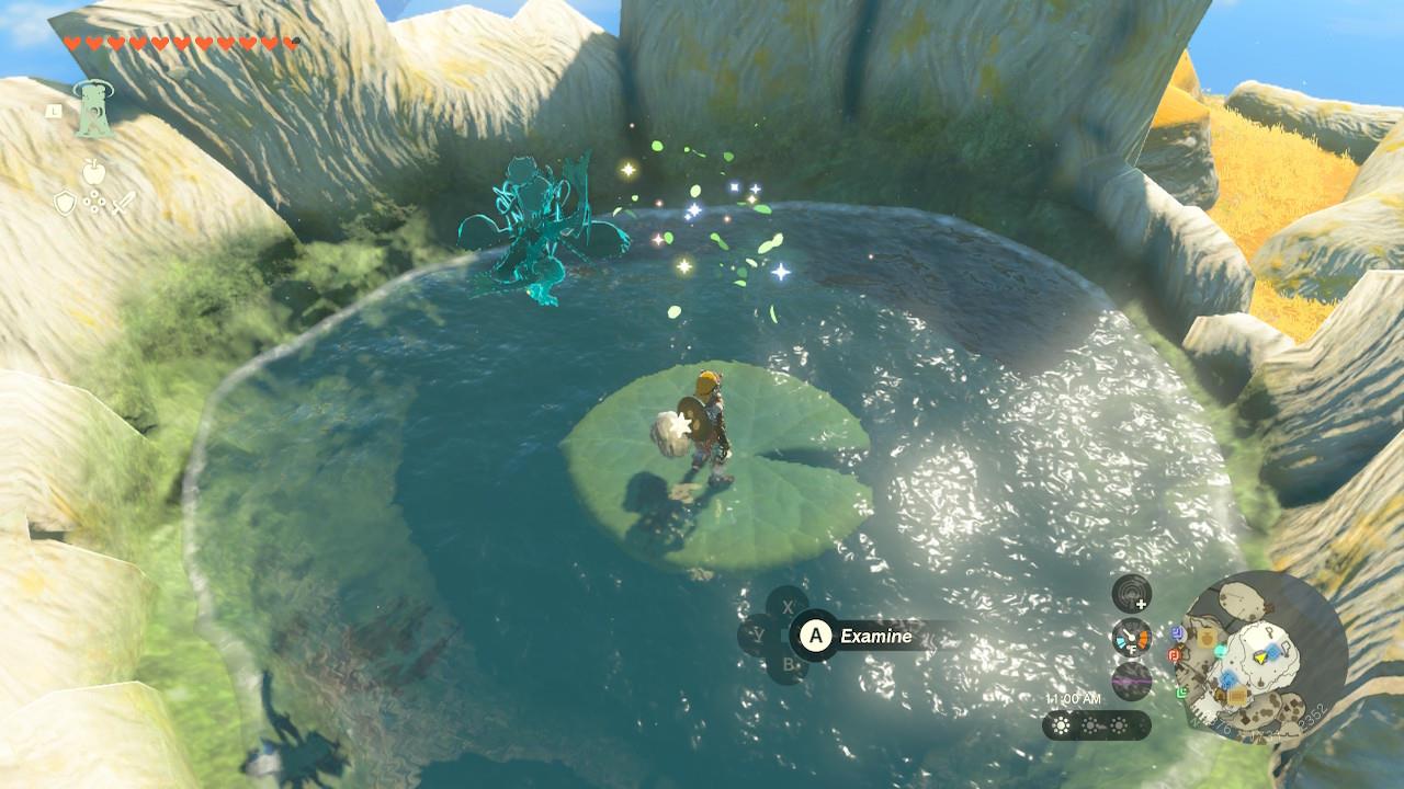 - On the same island as the Room of Awakening, head to the top of the tree trunk toward the southern corner of the area. You’ll see a pool of water with a massive leaf in the middle at the coordinates (0376, -1731, 2352). Hop on the leaf, and then examine the floating leaves that sprawl from it to get the seed.