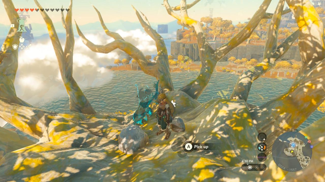 - East of Sonapan Shrine, and west of Nima Plain, you’ll see a tree displayed on the map at the coordinates (-1740, -0400, 0120). All you have to do here is climb to the top of the tree and lift the rock.