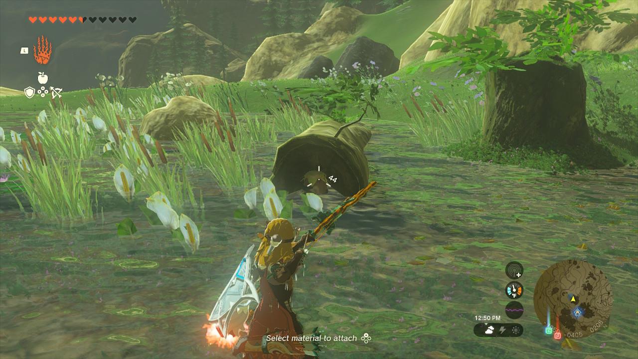- Northwest of Ukouh Shrine, on that same portion of the island, you’ll find a trail of leaves close to some Zonai structures around the coordinates (0252, -0823, 1443) – follow the leaves until you get the prompt to examine them, and you’ll get the seed.