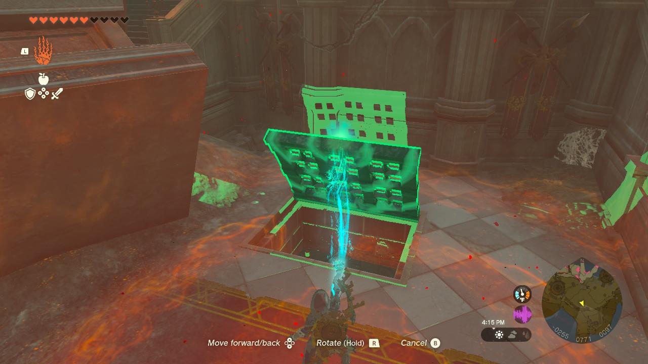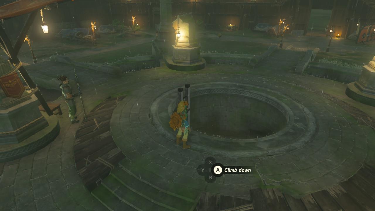 You’ll have to climb the walls to get up there, which you should have plenty of stamina for. You’ll know you’re in the right place when you see Nobiro. Toward the back of the room, on the first floor, there’s a grate. Use Ultrahand to open it then drop right in. Don’t skip the chest here – there’s a diamond inside.