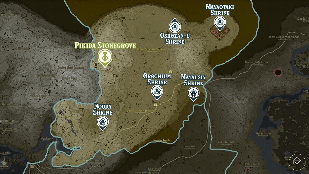 Pikida Stonegrove is one of the cold, mountainous regions in Tears of the Kingdom, and its shrines are spread across steep cliffs and snowy plateaus. On the map, players can find the Pikida Stonegrove Shrine northwest of the Hebra Mountains, near areas covered in deep snow and strong winds. Be prepared for icy terrain and use cold-resistant gear to reach it safely. This location not only offers valuable rewards but also serves as a useful point for exploring the surrounding mountain routes.