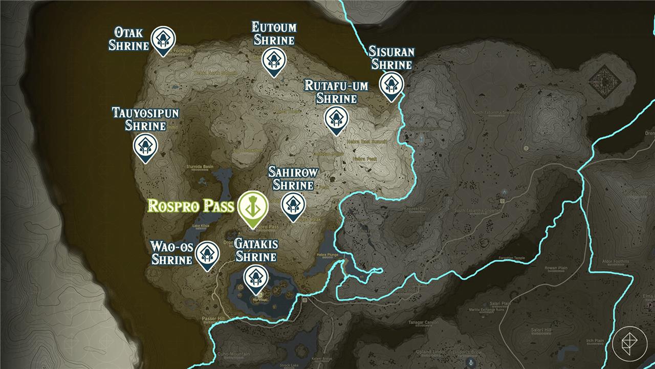 The Rospro Pass Shrine is located in the snowy northwest region of Hyrule, within the Hebra Mountains. On the map, players can find it west of the Rospro Pass Skyview Tower and south of Lake Kilsie. This area is cold, so equipping warm gear or consuming spicy food is necessary to withstand the freezing temperatures. The shrine itself offers puzzles focused on environmental mechanics and serves as a handy fast-travel point for exploring the surrounding peaks.