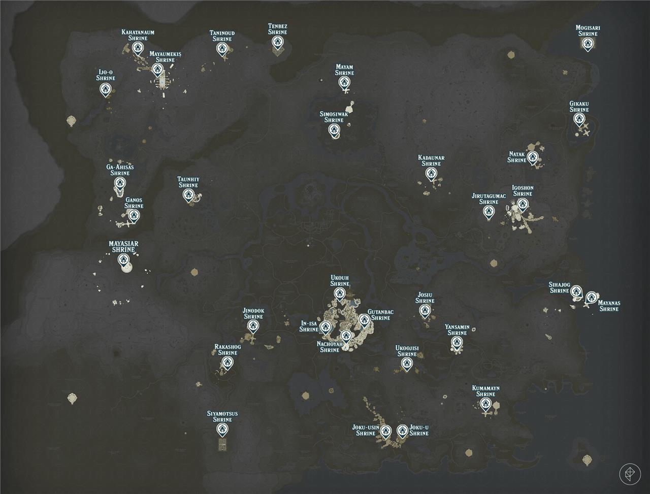 For a more detailed view, here is every shrine shown above, broken down region-by-region: