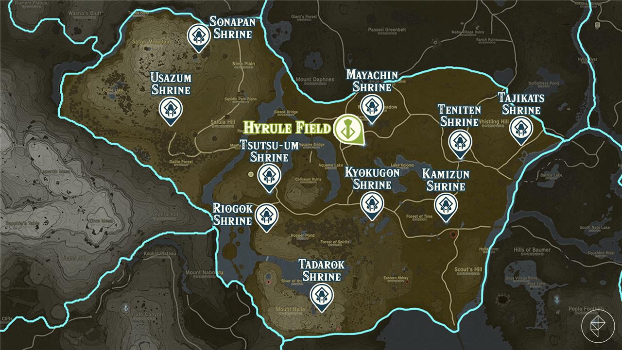 Regional listing: It appears in Hyrule Field / Lookout Landing shrine lists under those same coordinates.