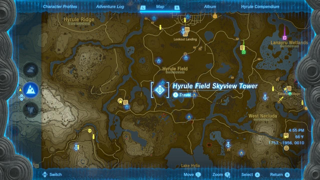 - Hyrule Field Skyview Tower (southwest Hyrule Field)