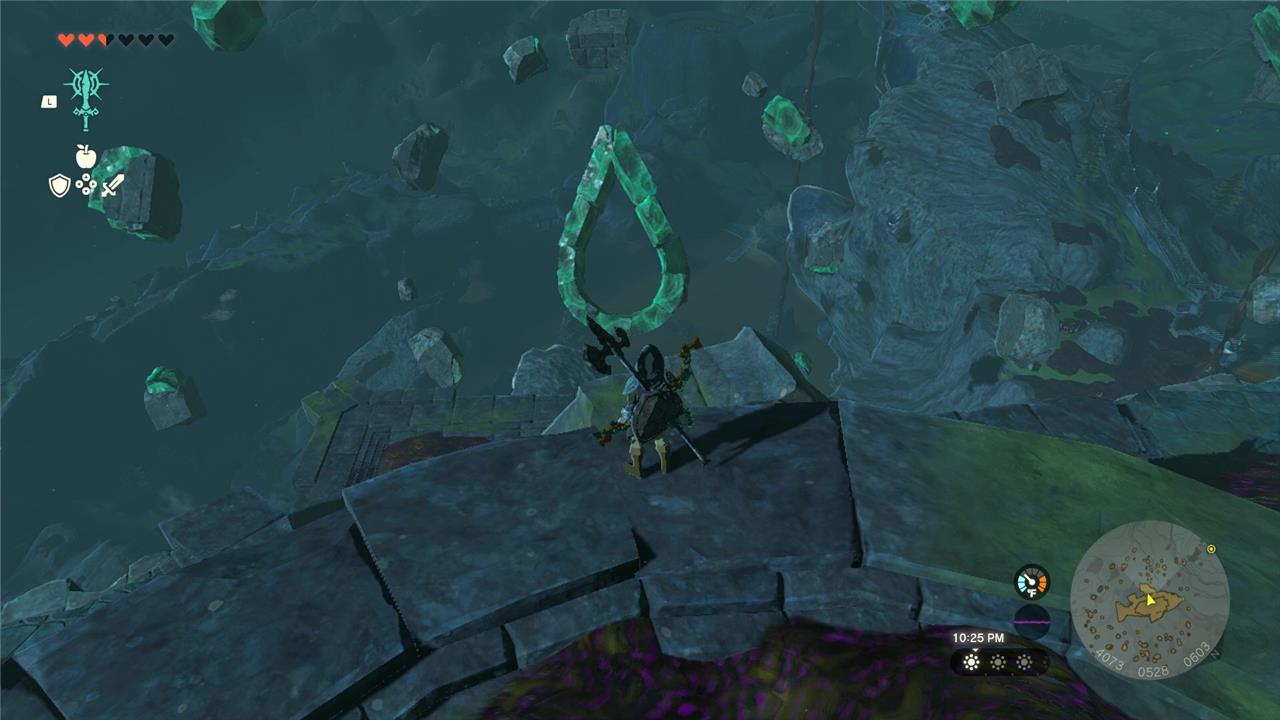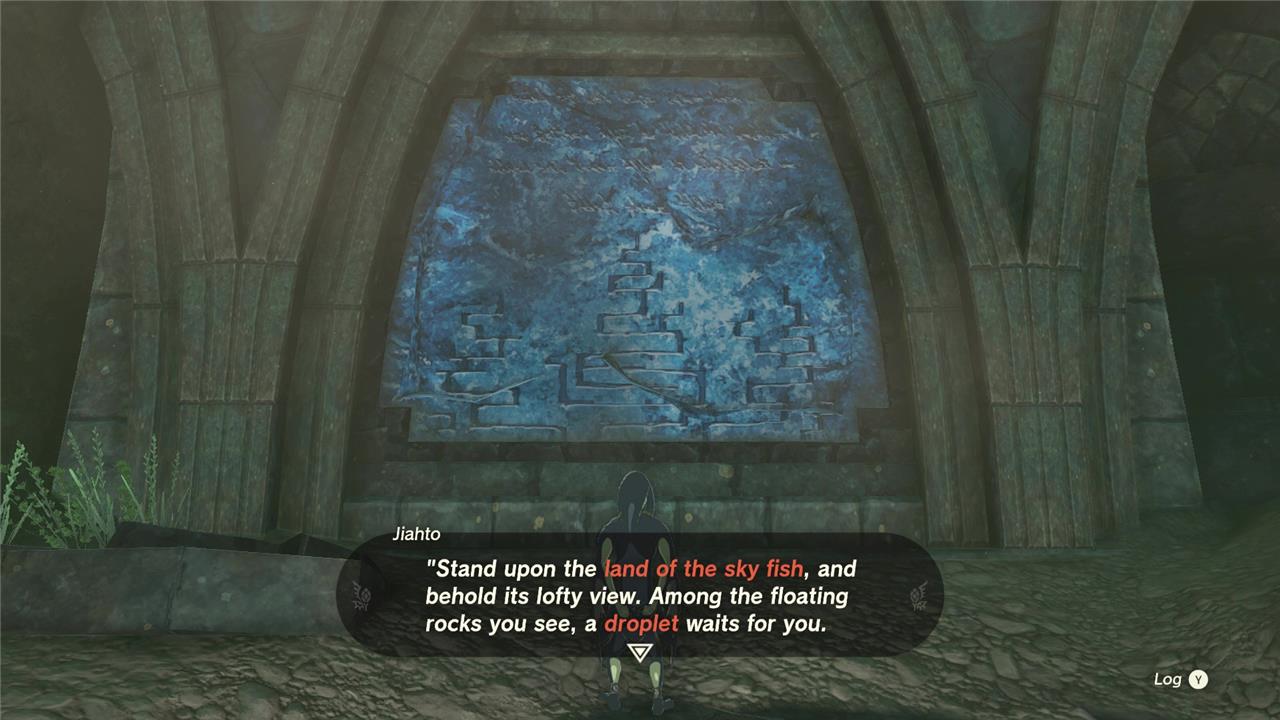 At Floating Scales Island, known as the Land of the Sky Fish, position Link at the central high point and face southwest. Green floating stones align into a droplet shape when viewed from this angle. Fuse a King’s Scale to an arrow from King Dorephan, then shoot through the droplet to trigger a green light pillar revealing the watery bridge.
